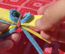 - Dann in der Mitte mit einem Gummiringerl zusammenbinden.