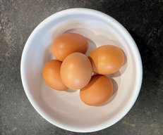 Währenddessen Eier und Zucker in einer Rührschüssel mit einem Handmixer mischen und kurz (!) verquirlen. Das Mehl darüber sieben und unterrühren.