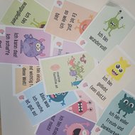 Unterstützend kann man die ausgewählten Sätze auf bunte Post It´s schreiben und die Kinder etwas dazu malen lassen. Der Kreativität sind allerdings keine Grenzen gesetzt. Man kann anstatt der Post It´s auch einen Regenbogen malen und die Sätze auf die Farben schreiben oder eine Blume und die Affirmationen in die Blüten hinein zeichnen…