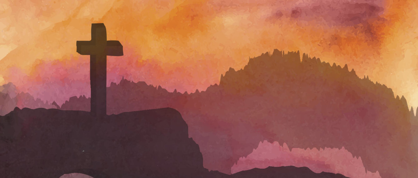 Wer möchte, kann auch drei Kreuze basteln und sie auf einen Hügel im Hintergrund kleben.