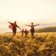 - Kinder, die ausgelassen durchs Gras rannten und kugelten.
